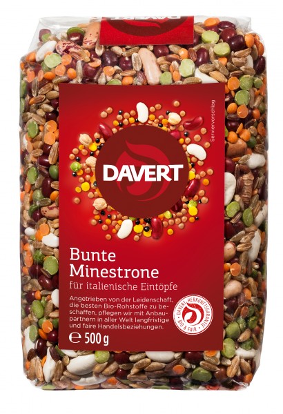 Minestrone là một món súp nổi tiếng thuộc về các món ăn của Ý. Thành phần các loại hạt có nhiều màu sắc và đa dạng. Bunte Minestrone kết hợp các loại đậu và ngũ cốc thành một hỗn hợp có giá trị dinh dưỡng cao. Đối với súp, chỉ cần thêm một vài thành phần tươi và một ít nước dùng rau.